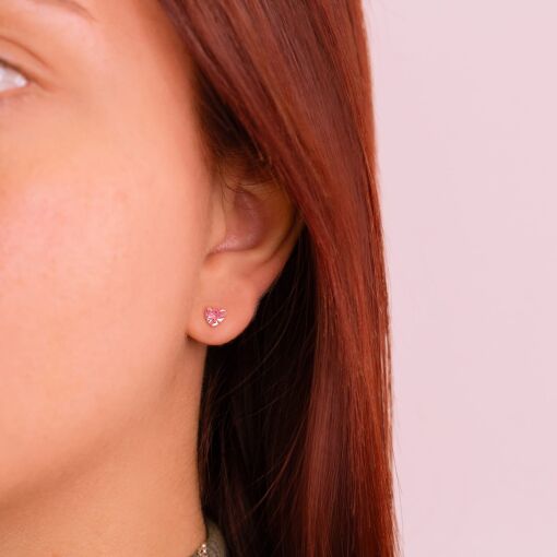 Brinco Prata Coração Zircônia Vermelha 4mm