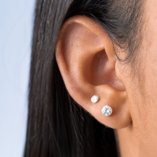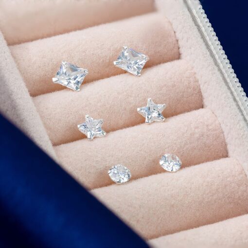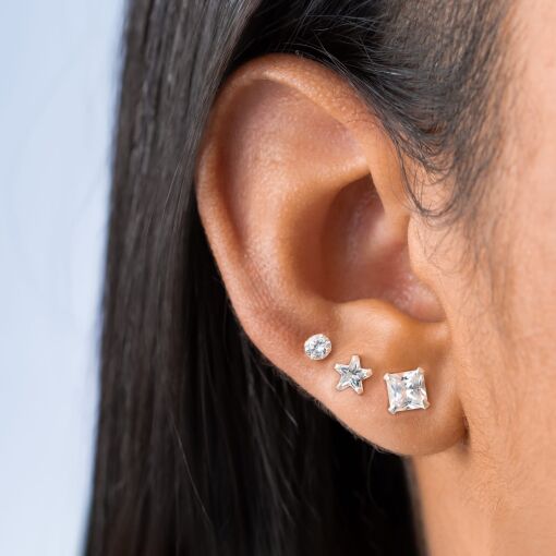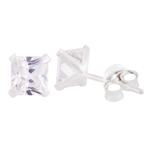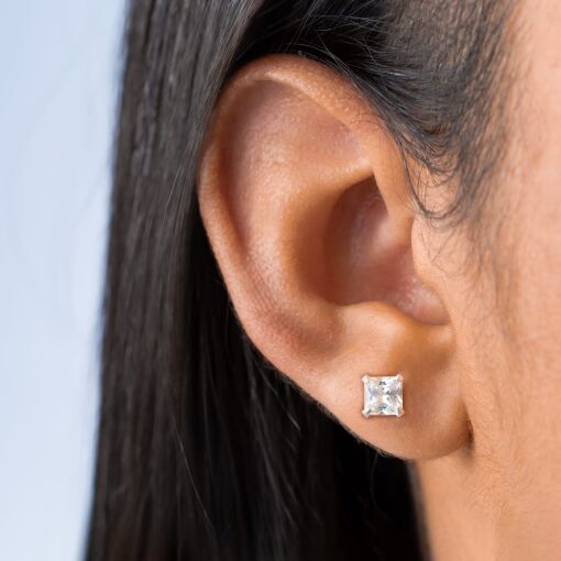 Brinco Prata Ponto de Luz Quadrado 3mm